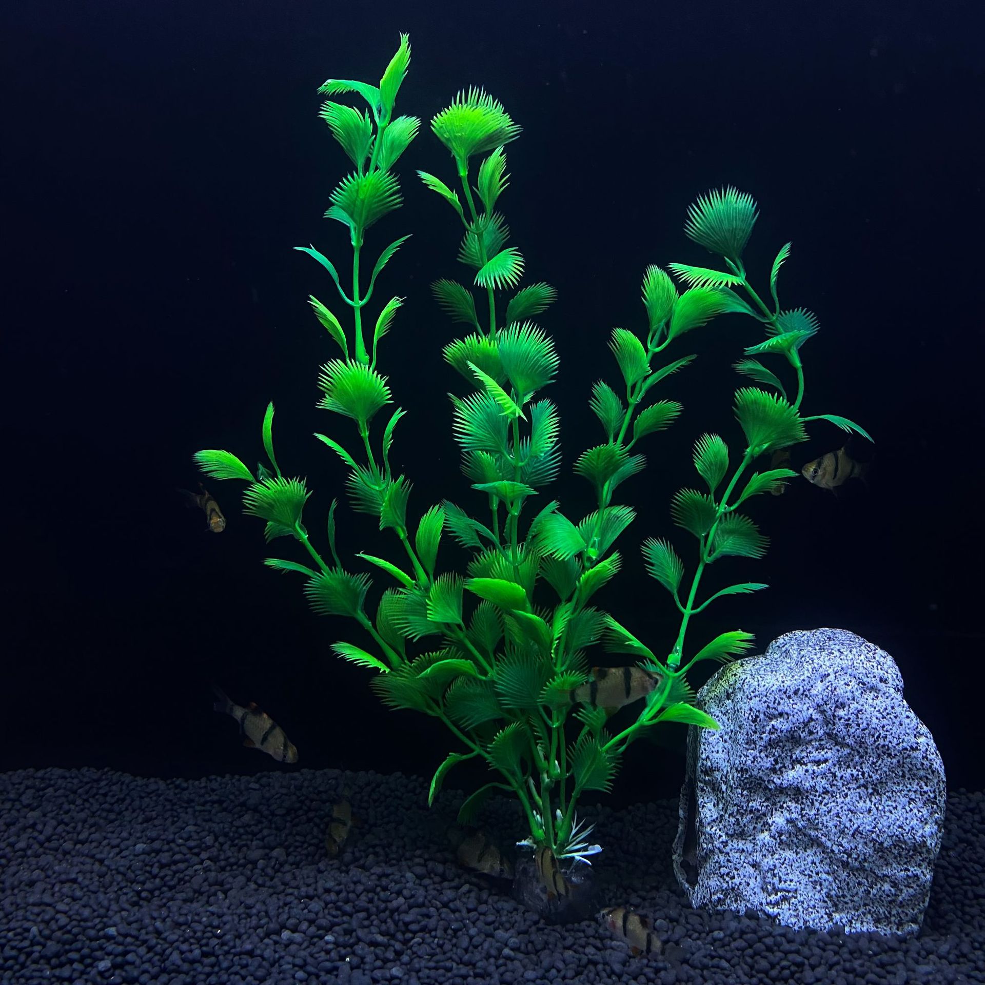 This artificial plant was exactly what I needed for completing our family’s first freshwater aquarium setup. With its realistic design and optimal height at 30cm tall, it provides ample cover for our shy fishes while also adding depth into our little underwater world – making everything appear larger than life itself! And let’s not forget how simple installation was; we were able add some greenery into our tank without any hassle at all. Additionally, since these aren’t real plants there’s no need fret over proper lighting conditions or specific nutrients required by certain species – giving us beginners peace mind knowing we’re providing safe environment for our aquatic pets. Overall, this product is a fantastic balance of aesthetic appeal and practicality.