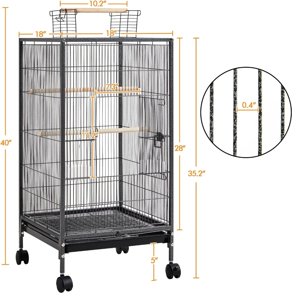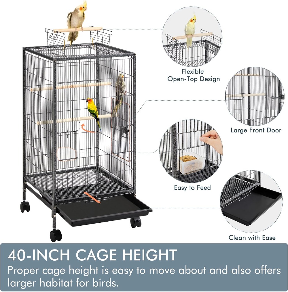 • Convenient Rolling Stand: Equipped with 360-degree swivel wheels, the rolling stand makes it easy to move the cage around your home, while also ensuring stability and easy access.