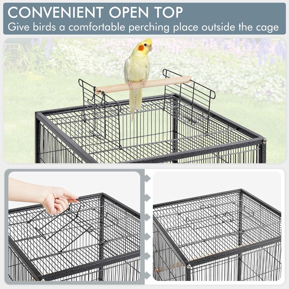 • Open-Top Design: The open-top feature allows your birds to enjoy additional space and freedom, offering a natural and engaging environment.