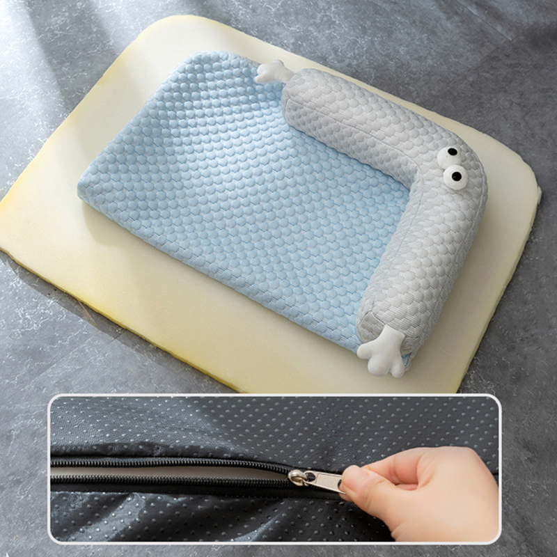 Our Cooling Dog Bed Mat is more than just a bed; it’s a sanctuary for your pet. Made from breathable, ice silk fabric, it offers a naturally cool feel that helps regulate your dog’s body temperature, ensuring they stay comfortable even in the heat. The mat is soft to the touch, making it a perfect resting place for your dog while also offering neck protection to support their cervical vertebrae.