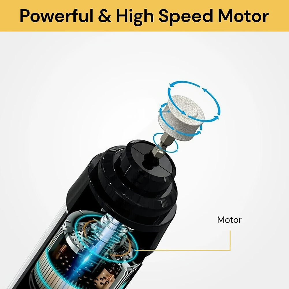 Powered by a rechargeable battery, this electric nail grinder is designed for efficiency and convenience. With its USB charging capability, you can easily recharge it using your computer, power bank, or any compatible Android charging head.