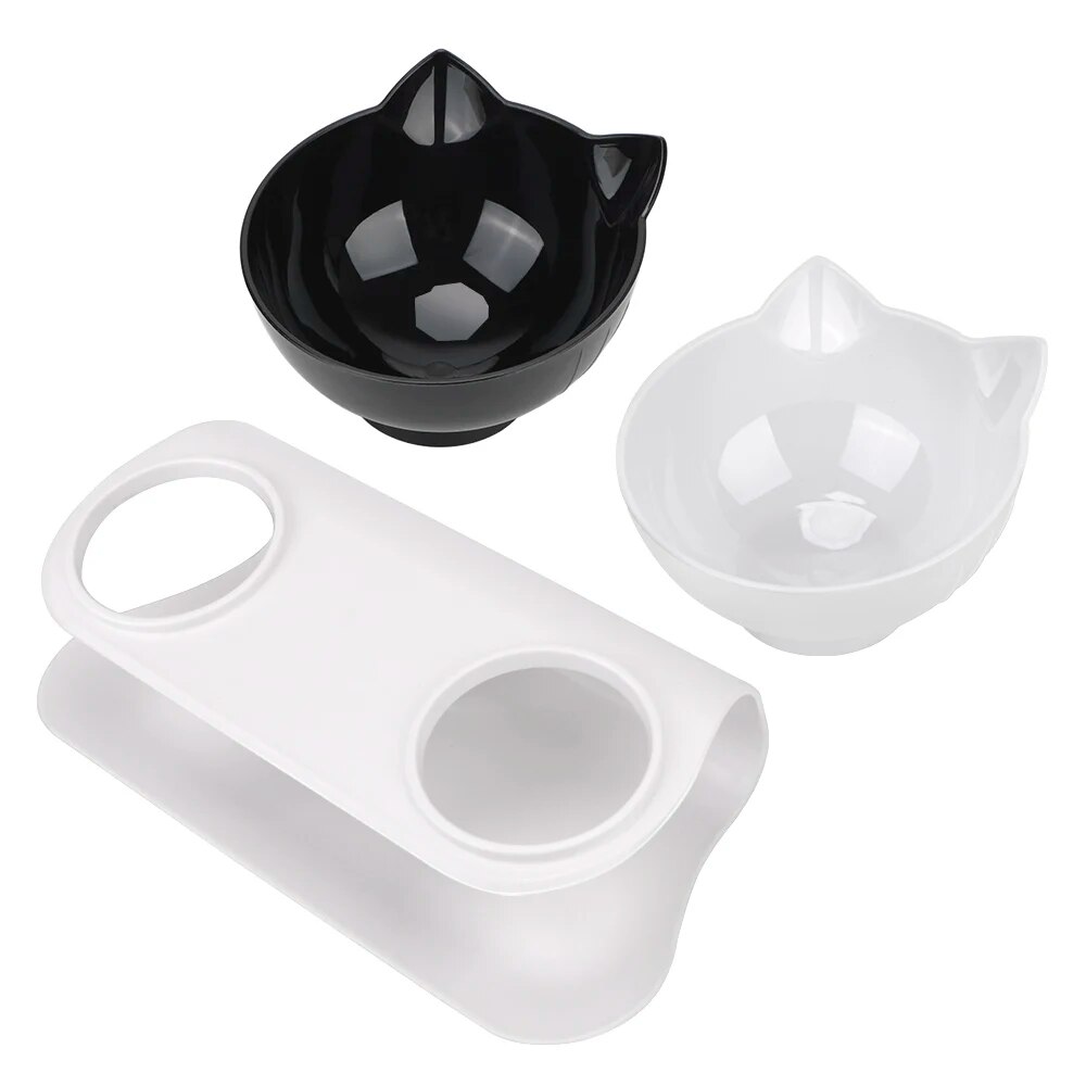 Ergonomic Double Bowls Pet Feeder with Raised Stand for Cats and Dogs