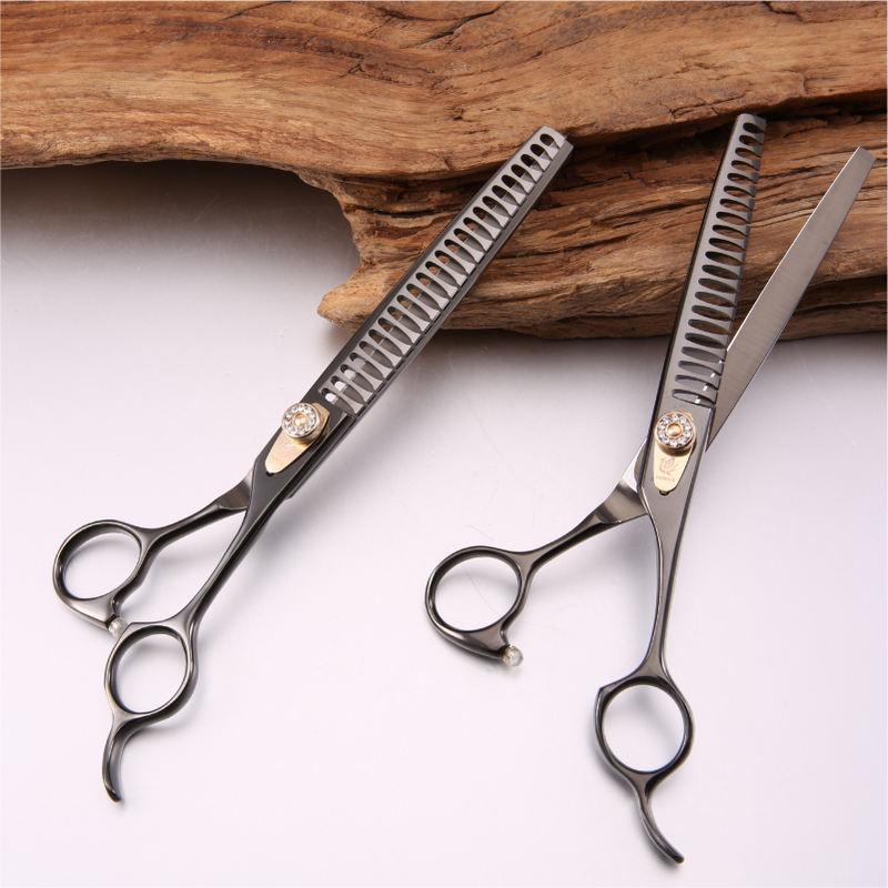 Our Professional Titanium-Coated Thinning Shears stand out due to their combination of high-quality materials, thoughtful design, and versatile use. The JP440c stainless steel ensures a razor-sharp edge that cuts cleanly every time, while the titanium coating adds a layer of protection against rust and wear. The ergonomic handle design means you can groom with precision and comfort, minimizing the strain on your hands. These shears are perfect for creating a soft, natural look by thinning out bulk, blending different lengths, and finishing with finesse.