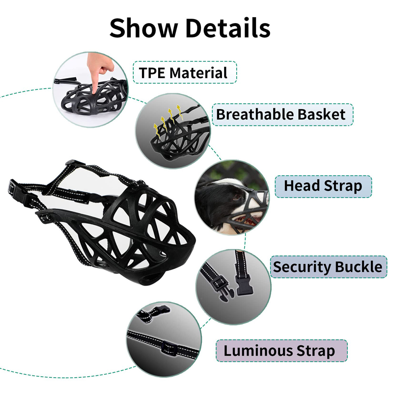 - Breathable Basket Design:Â Made from durable TPR (thermoplastic elastomer), this muzzle allows your dog to pant, drink water, and take treats comfortably. It’s airy and prevents overheating, ensuring your dog remains cool.
