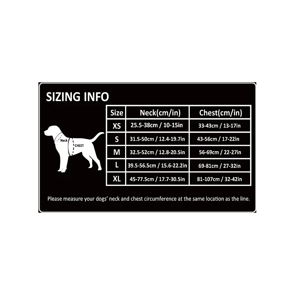 - **Adjustable Fit**: Available in sizes XS to XL, suitable for all dog breeds.