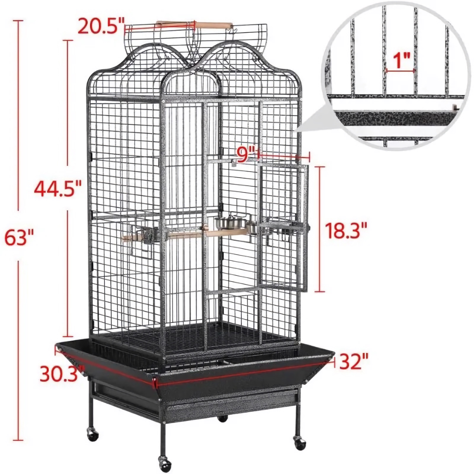 • Spacious Living Area: The large dimensions (32″L x 30.3″W x 63″H) provide ample room for multiple medium-sized birds or a single large parrot to move, play, and stretch their wings.