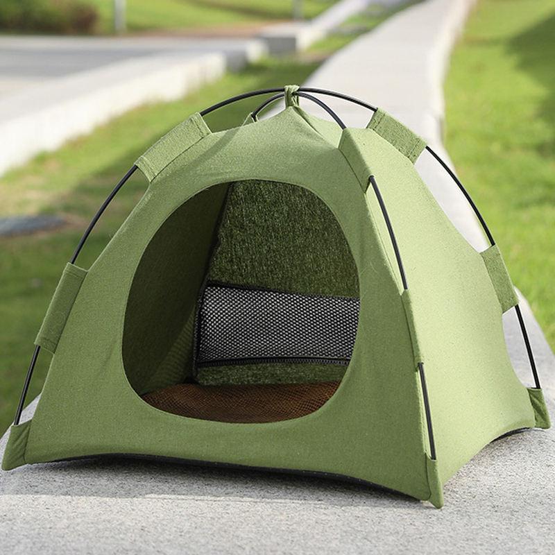 This canvas pet house is a lifesaver when we go camping. It gives our small dog a safe, comfortable place to relax.i was worried about the heat but this tent keeps my puppy cool and comfy even on hot days, great product!